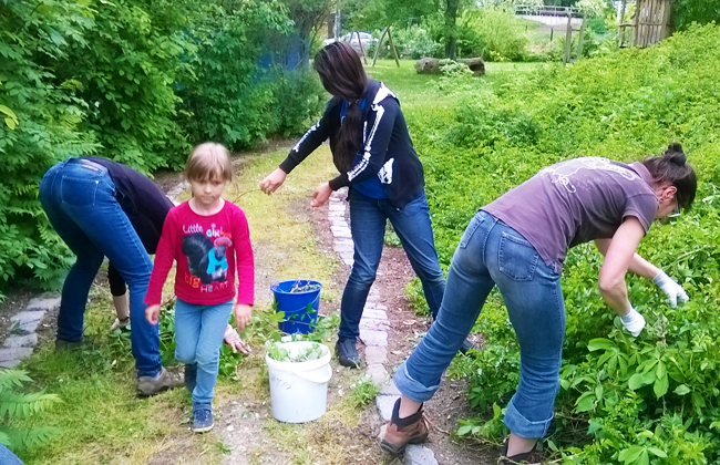 In den Beeten rund ums Kinderhaus gab es reichlich Unkraut zu entfernen.