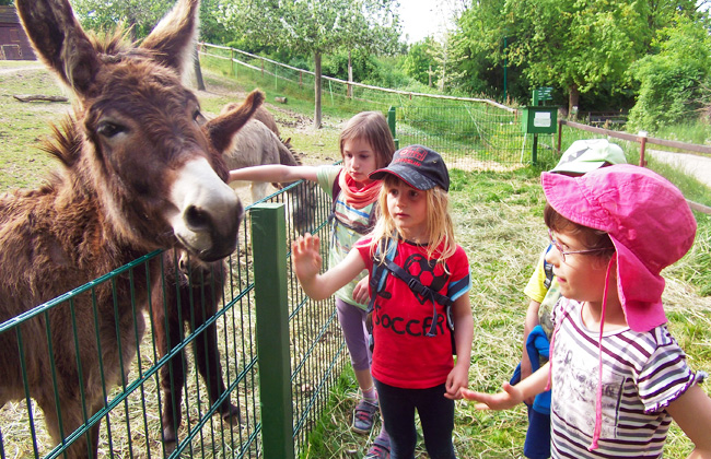 Die Rittersleut wanderten auch in die Hebelei. Dort genossen die Kinder das Spielen auf dem Wasserspielplatz und bewunderten aus nächster Nähe Pfau und Esel. Am Abend hörten wir beim Lagerfeuer eine spannende Rittergeschichte.